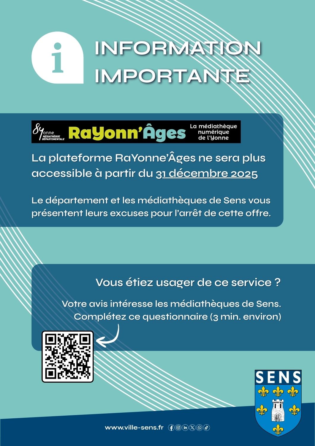 Ressources numériques Outils Imprimer + Lire la suite... En février, dans vos bibliothèques... Outils Imprimer + Lire la suite... Bonne année 2026 Outils Imprimer + Lire la suite... Nuit de la Lecture 2026 Outils Imprimer + Lire la suite... INFORMATION IMPORTANTE - RaYonn'Ages Outils Imprimer + Lire la suite... SaYonne'Ara 14ème édition Outils Imprimer + Lire la suite... Coups de ♥ janvier 2026 Outils Imprimer + Lire la suite...