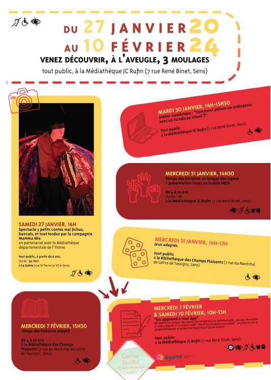 Cette quinzaine a pour but de présenter nos ressources accessibles en bibliothèque aux publics en situation d'handicap mais aussi de proposer des animations pour tous les publics tout en sensibilisant au handicap ; quinzaine dont vous trouverez le détail de la programmation ci-dessous et