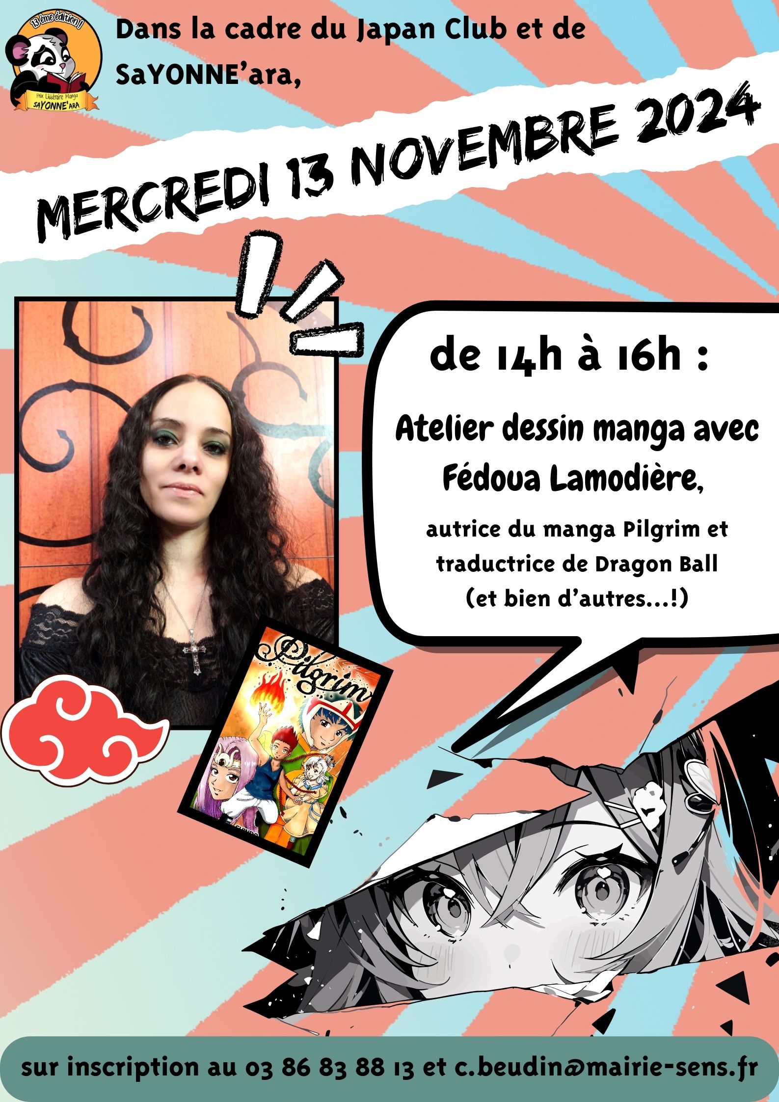 Dans le cadre de la première rencontre du JAPAN CLUB 2024/2025, nous sommes honorés et ravis d'accueillir la talentueuse Fédoua Lamodière, bien connue pour avoir traduit de nombreux mangas (dont "Dragon Ball"...) et pour être l'autrice du manga "Pilgrim" !